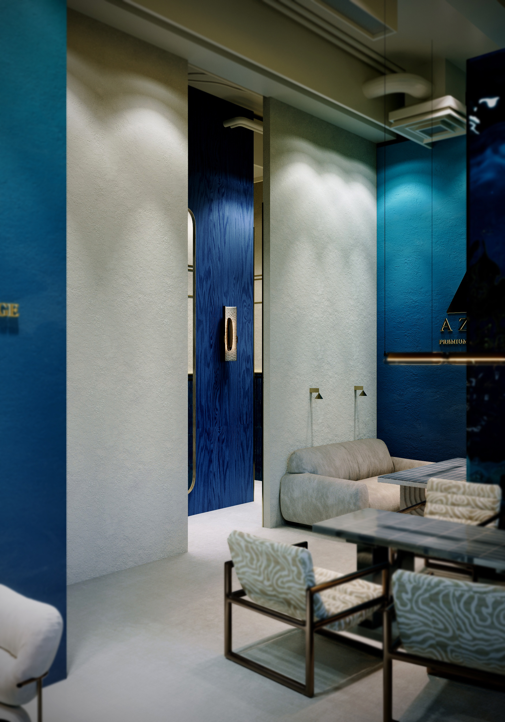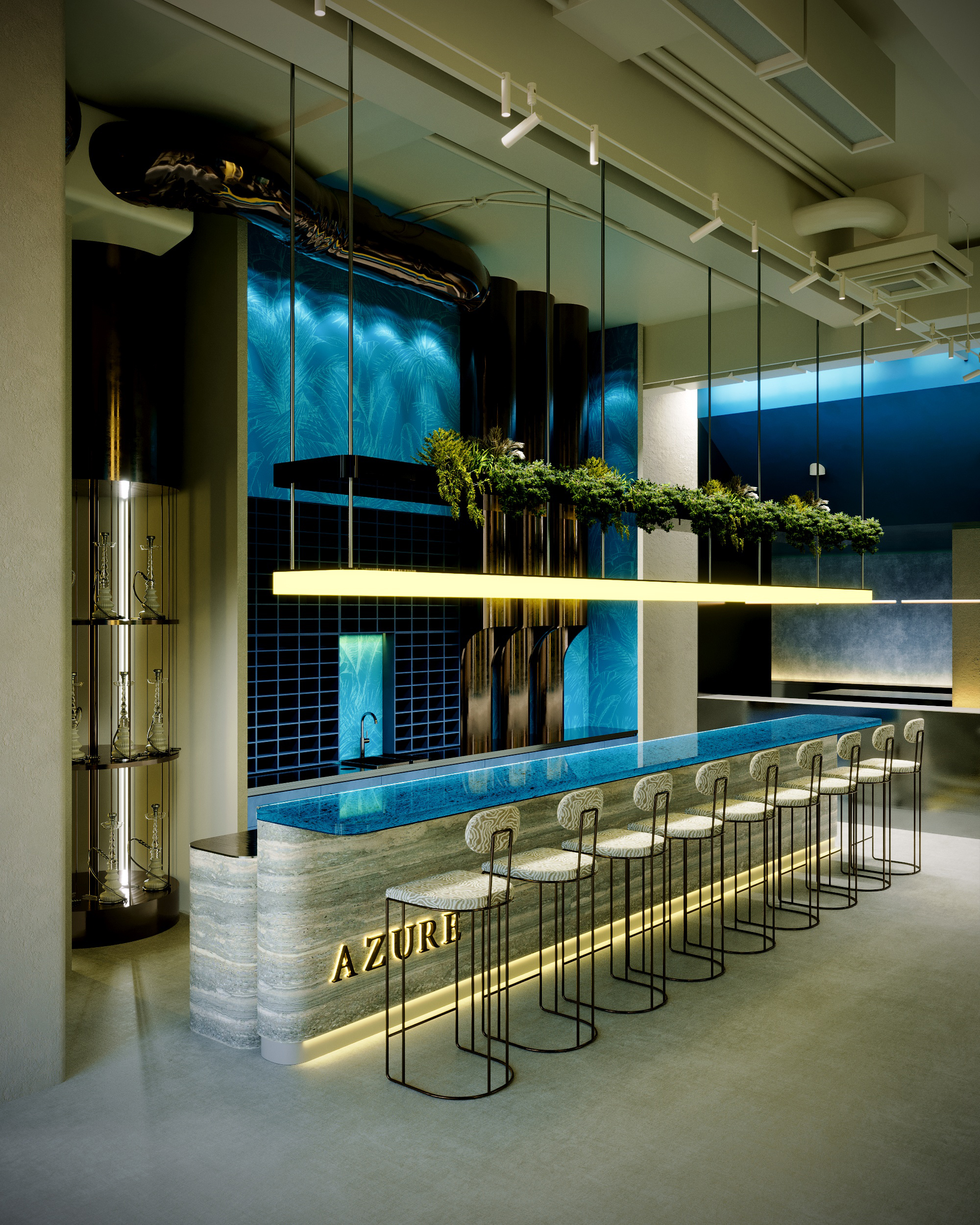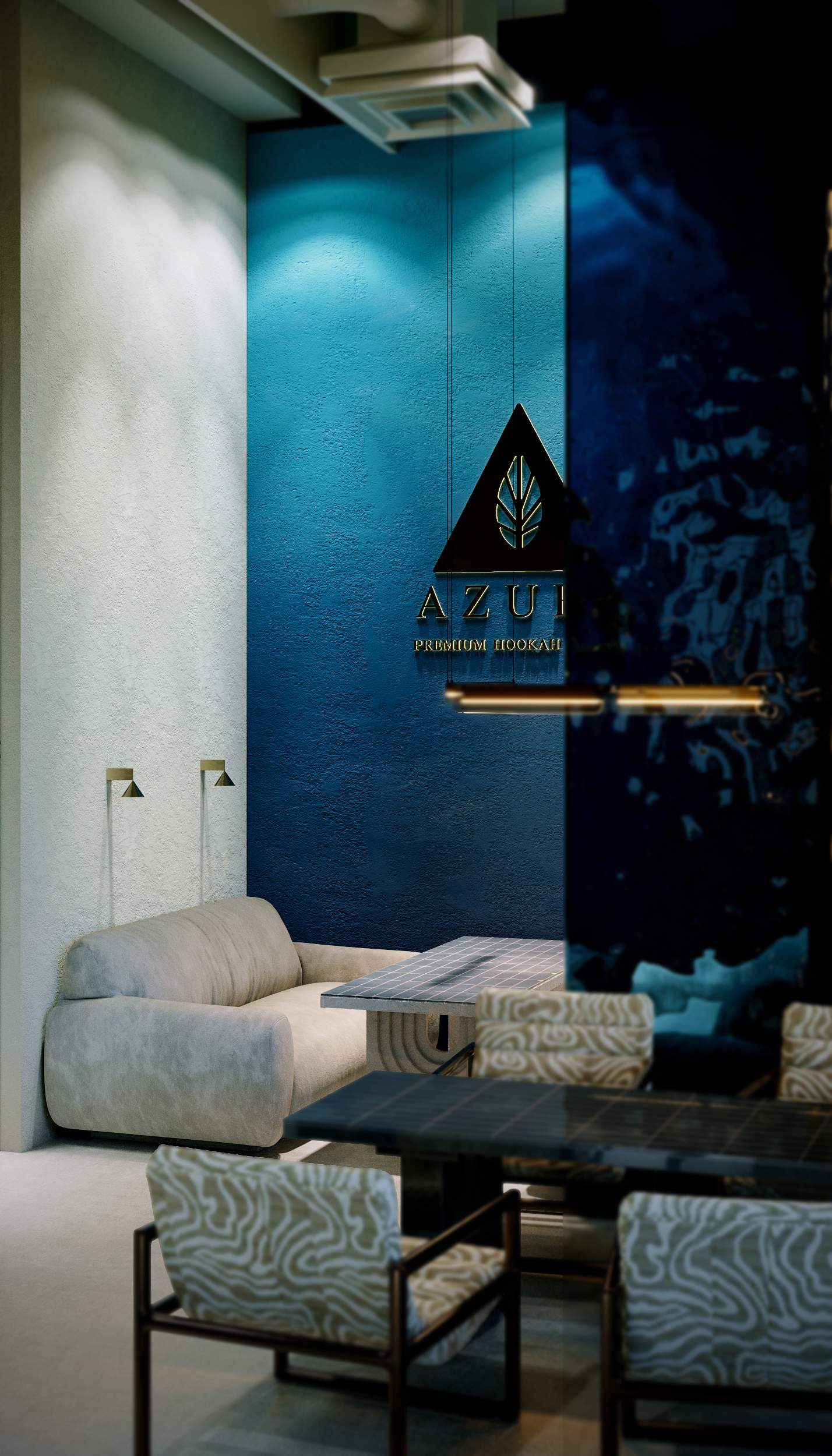 В итоге получился современный, визуально чистый и уверенный интерьер, где фирменный стиль Azure раскрыт через материалы, цвет и свет. Это дизайн кальянной, в котором атмосфера становится частью бренда.