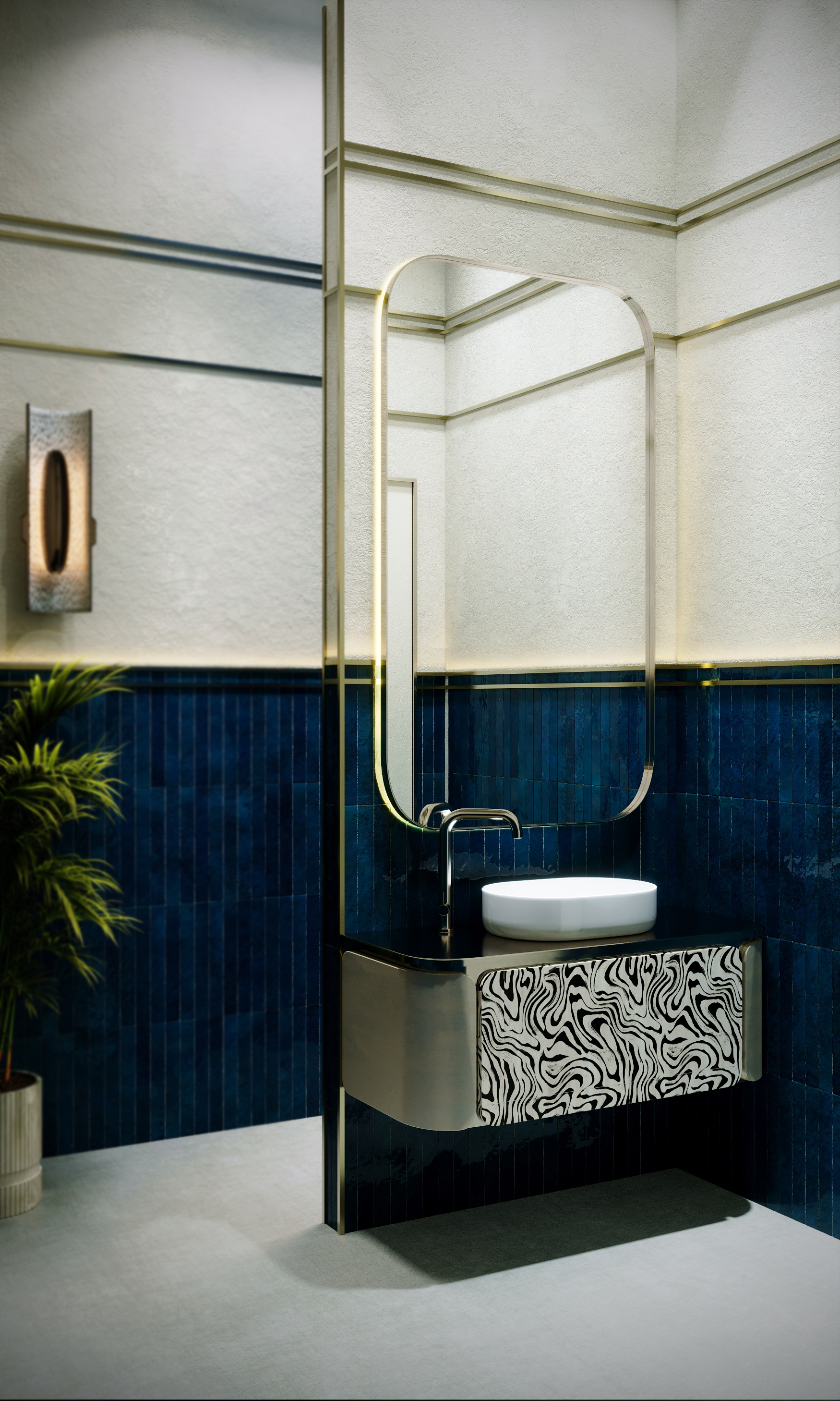 Формируя концепцию, мы объединили современные архитектурные решения с атмосферой расслабленного калифорнийского лайфстайла. Сине-лазурные панели, натуральный камень, мягкая подсветка тёплого спектра и интеграция фирменного логотипа создают пространство, в котором бренд не просто представлен — он живёт.