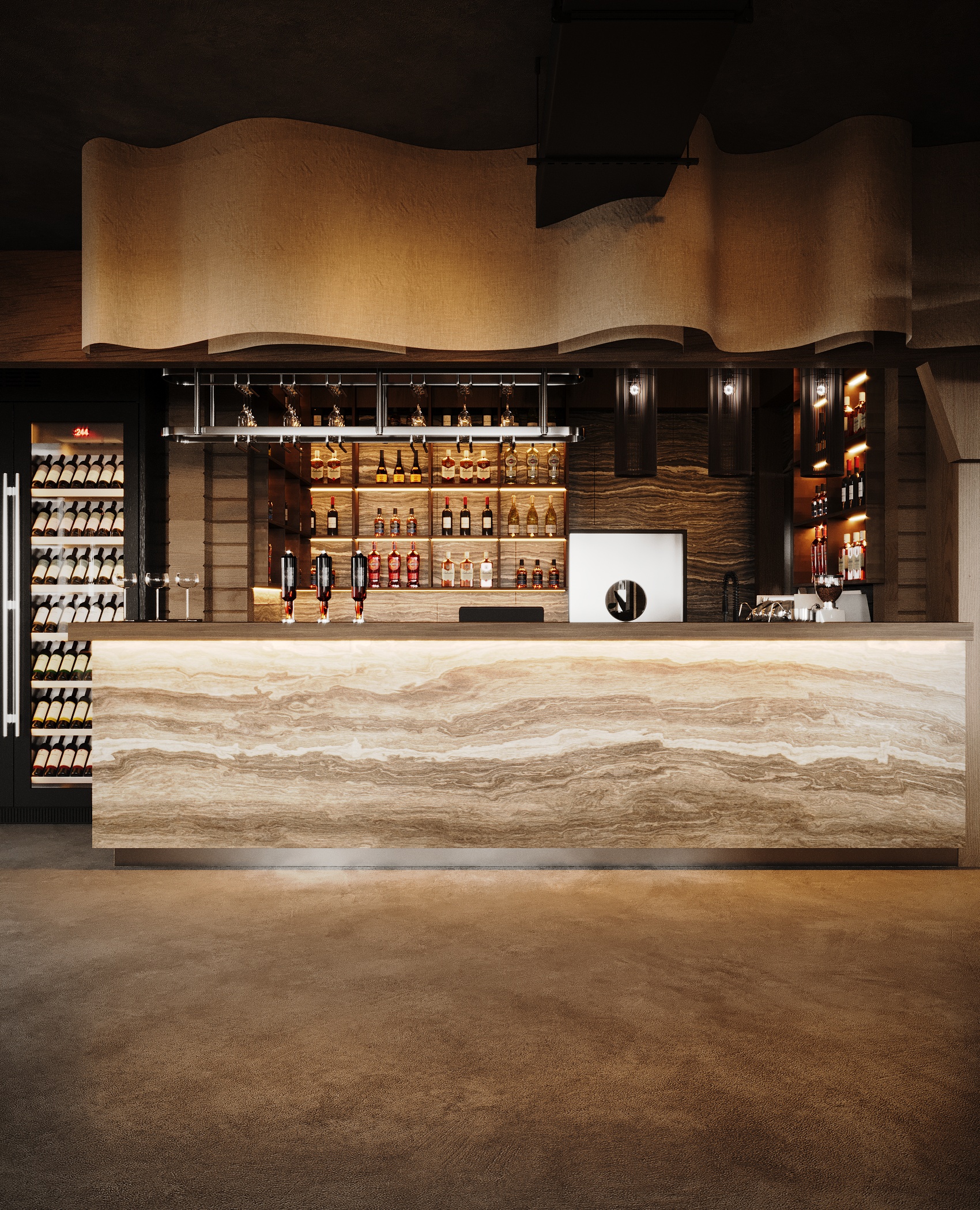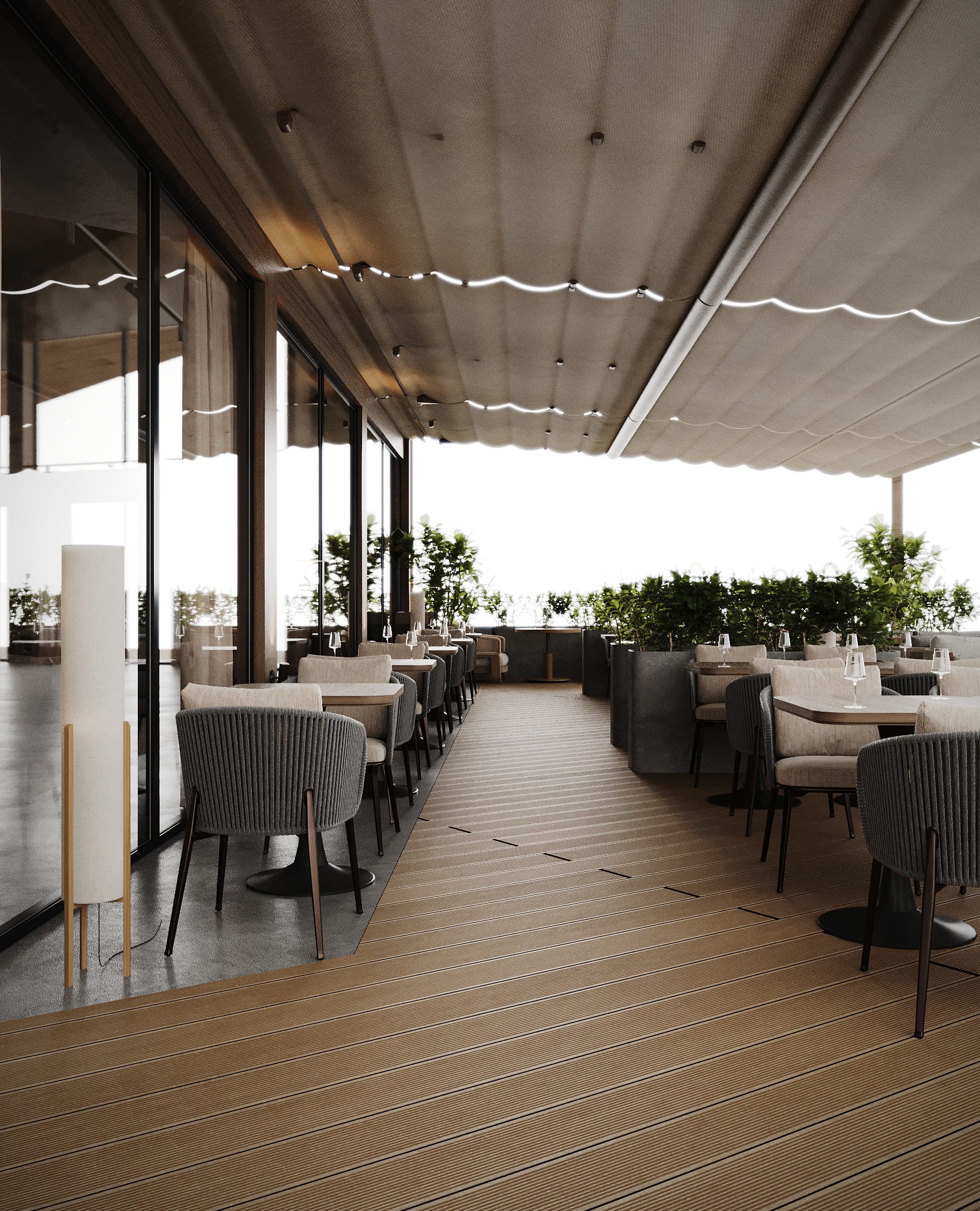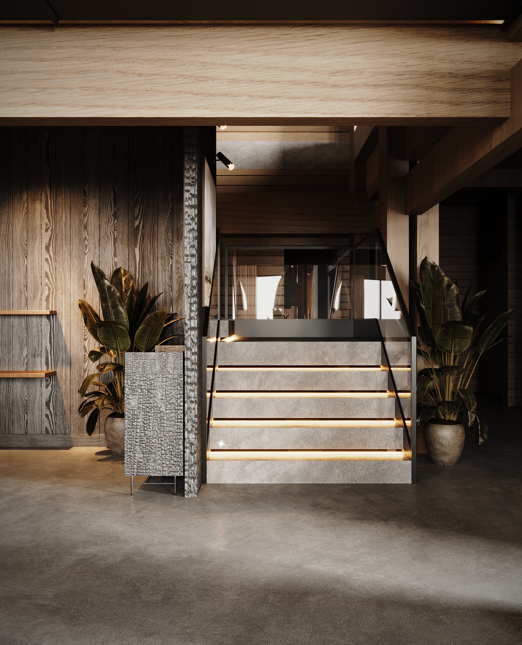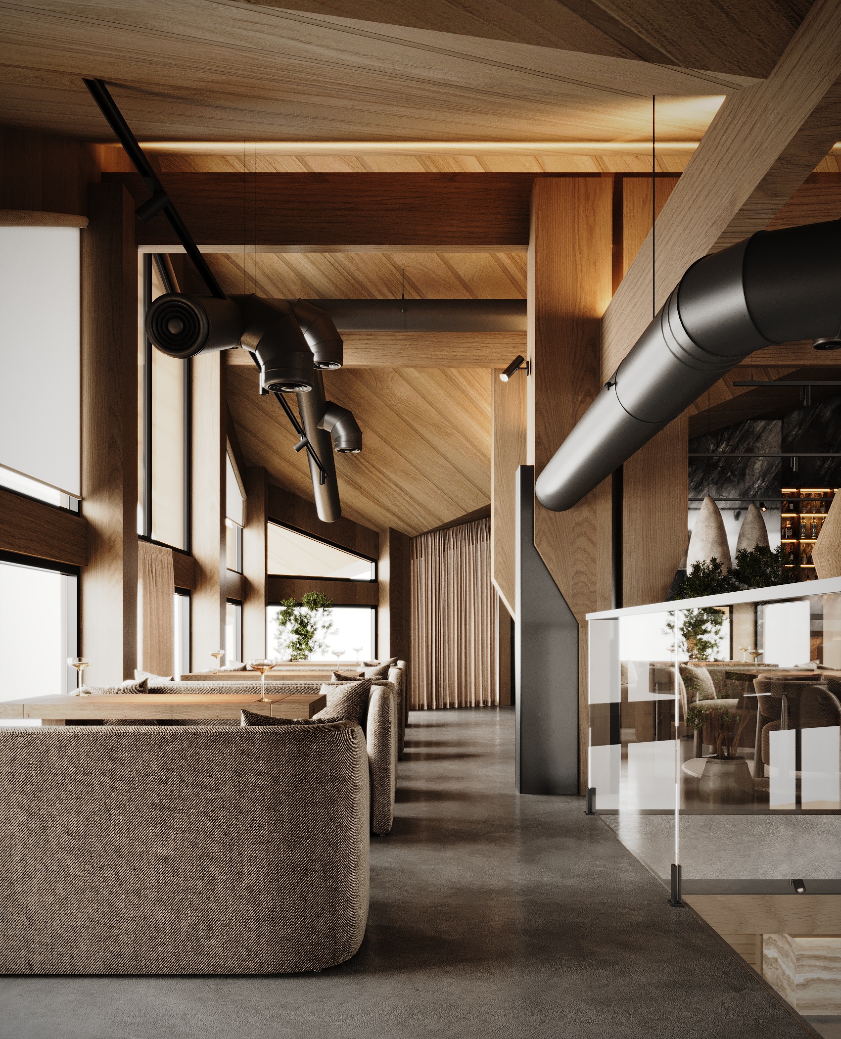 Описание проекта: Эталон современного HoReCa, где на одной территории идеально сосуществуют ресторанная гастрономия, семейный отдых и событийный формат. Дизайн построен на контрасте мужественной брутальности и мягкого уюта: тёплые тона дерева, травертин, чёрный текстурированный камень и обилие тактильного текстиля создают атмосферу, будто сам Хемингуэй вернулся из сафари и решил остаться надолго.