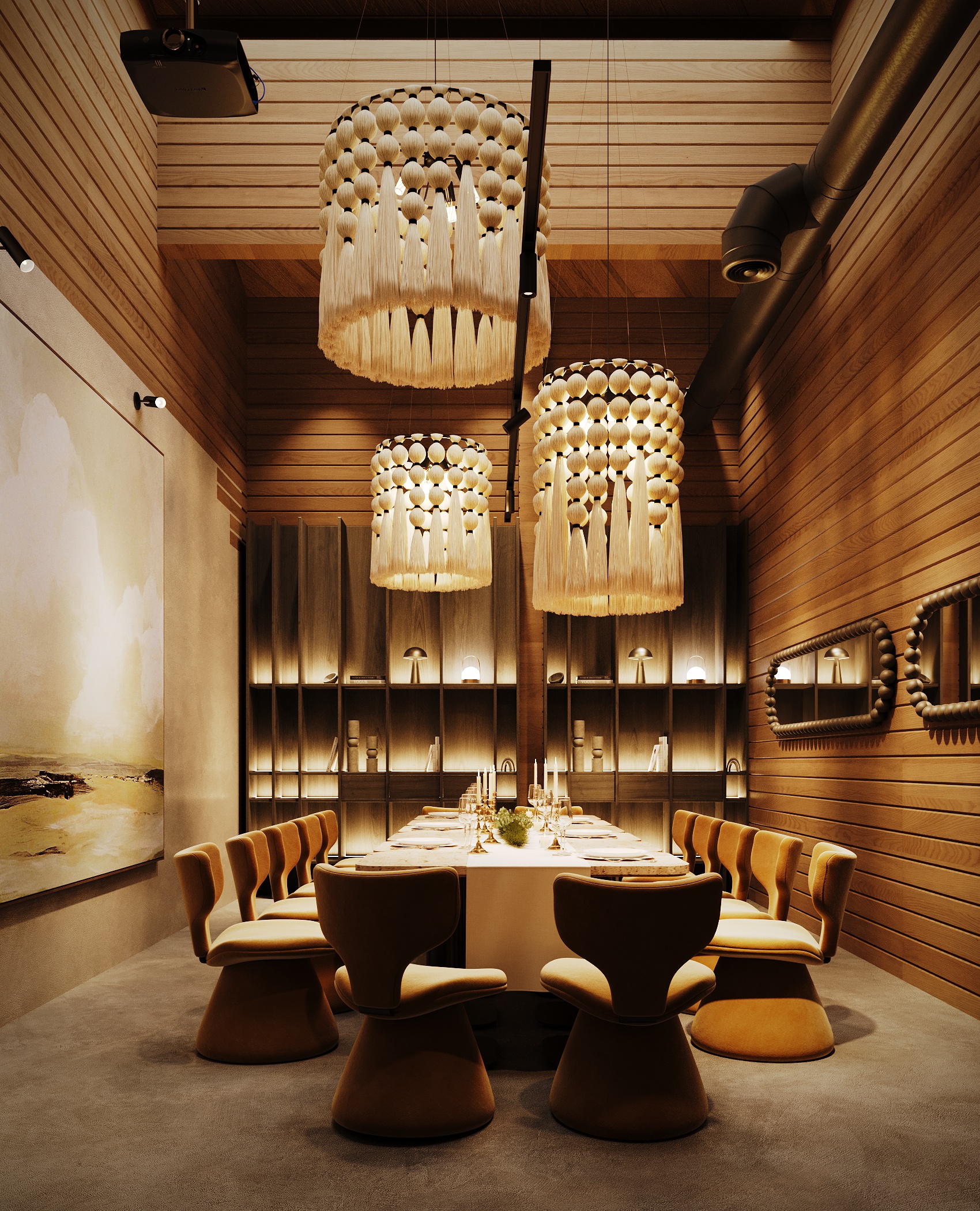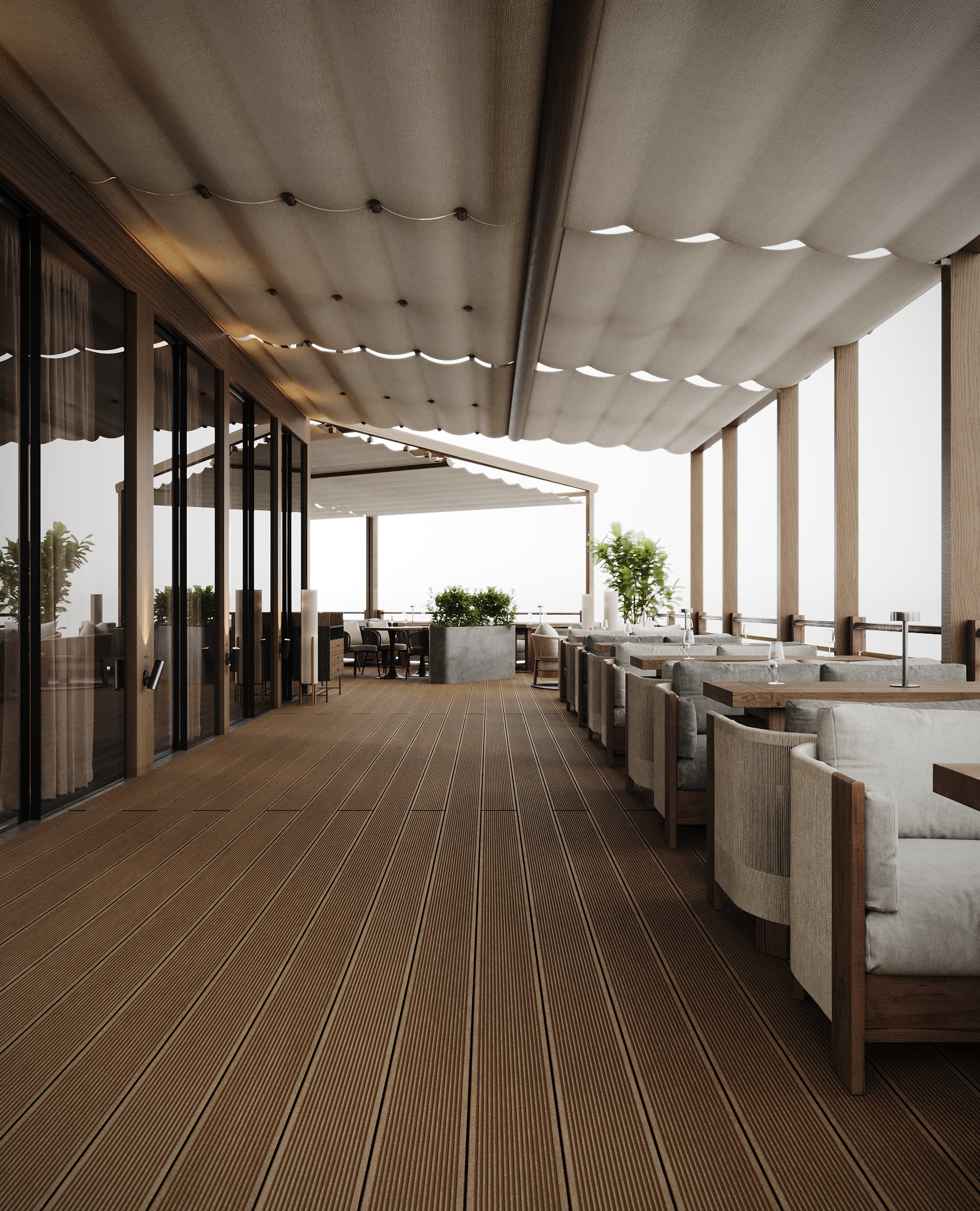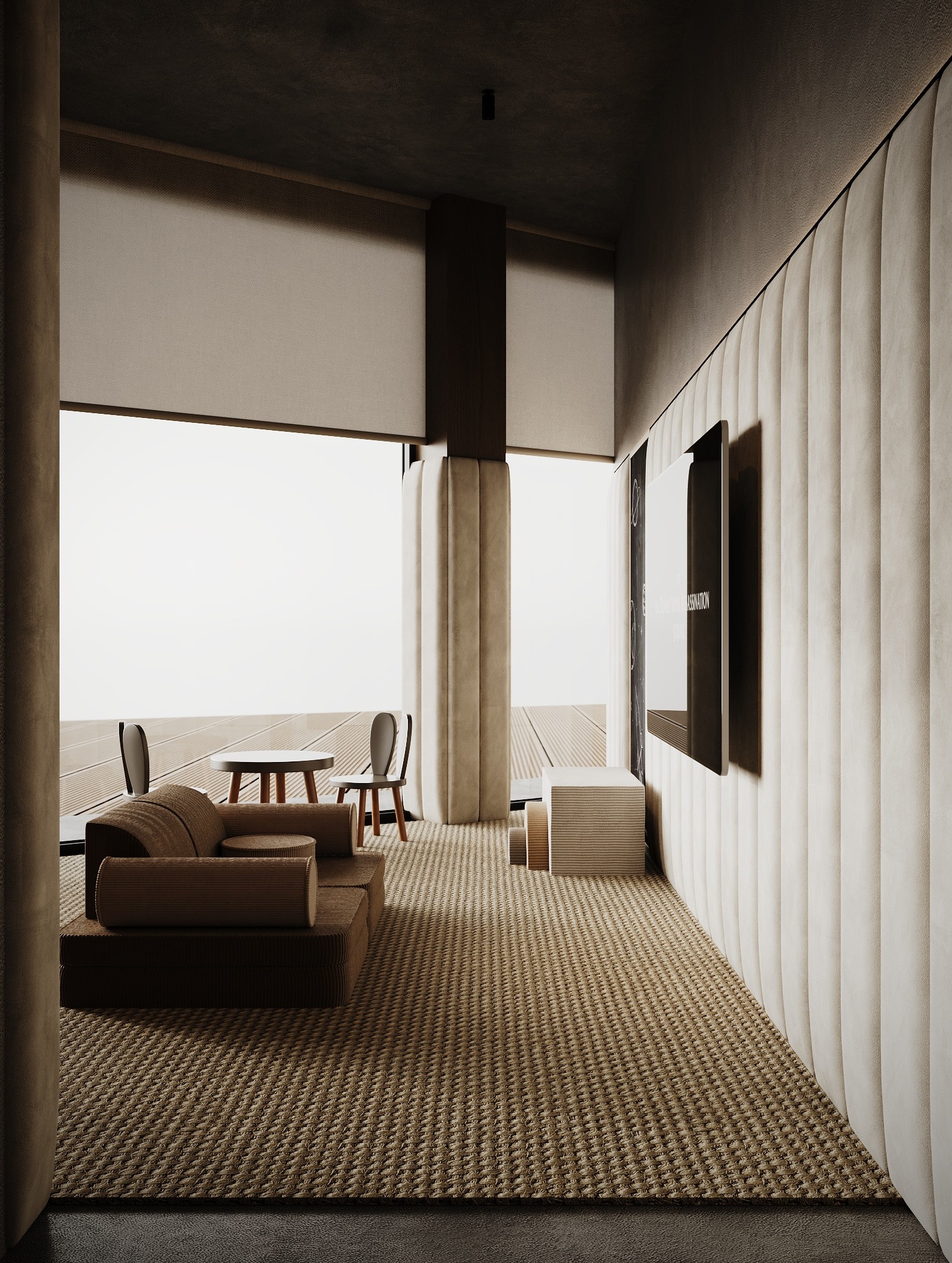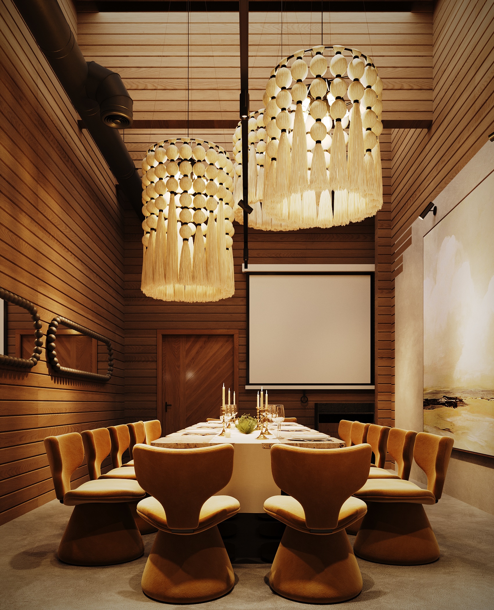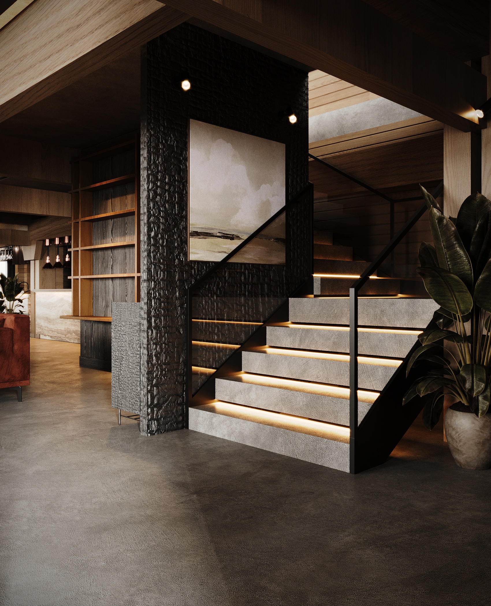 Описание проекта: Эталон современного HoReCa, где на одной территории идеально сосуществуют ресторанная гастрономия, семейный отдых и событийный формат. Дизайн построен на контрасте мужественной брутальности и мягкого уюта: тёплые тона дерева, травертин, чёрный текстурированный камень и обилие тактильного текстиля создают атмосферу, будто сам Хемингуэй вернулся из сафари и решил остаться надолго.