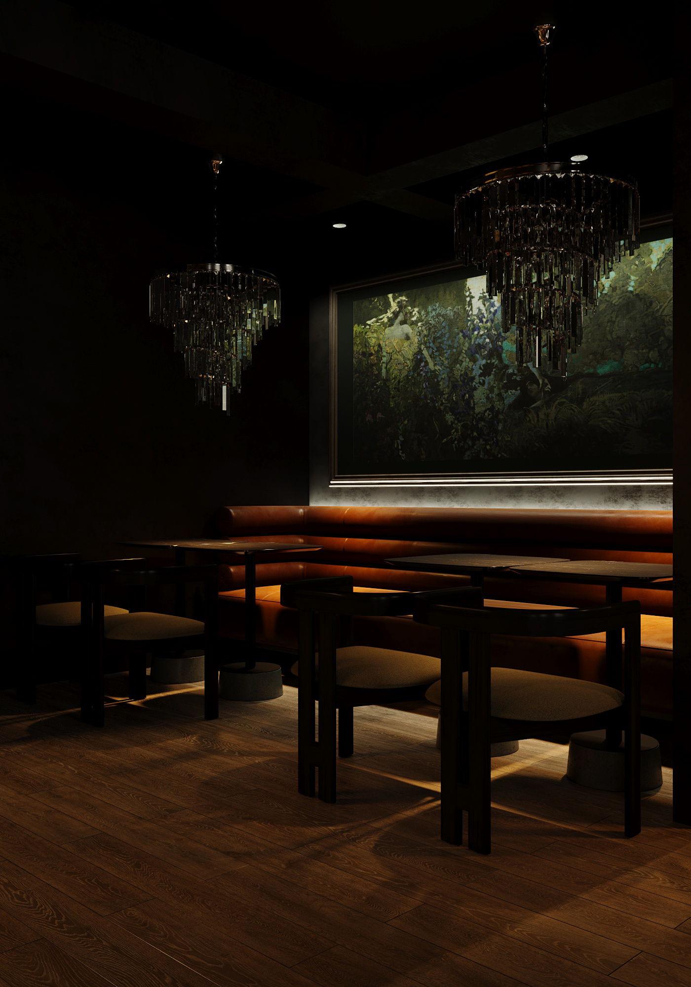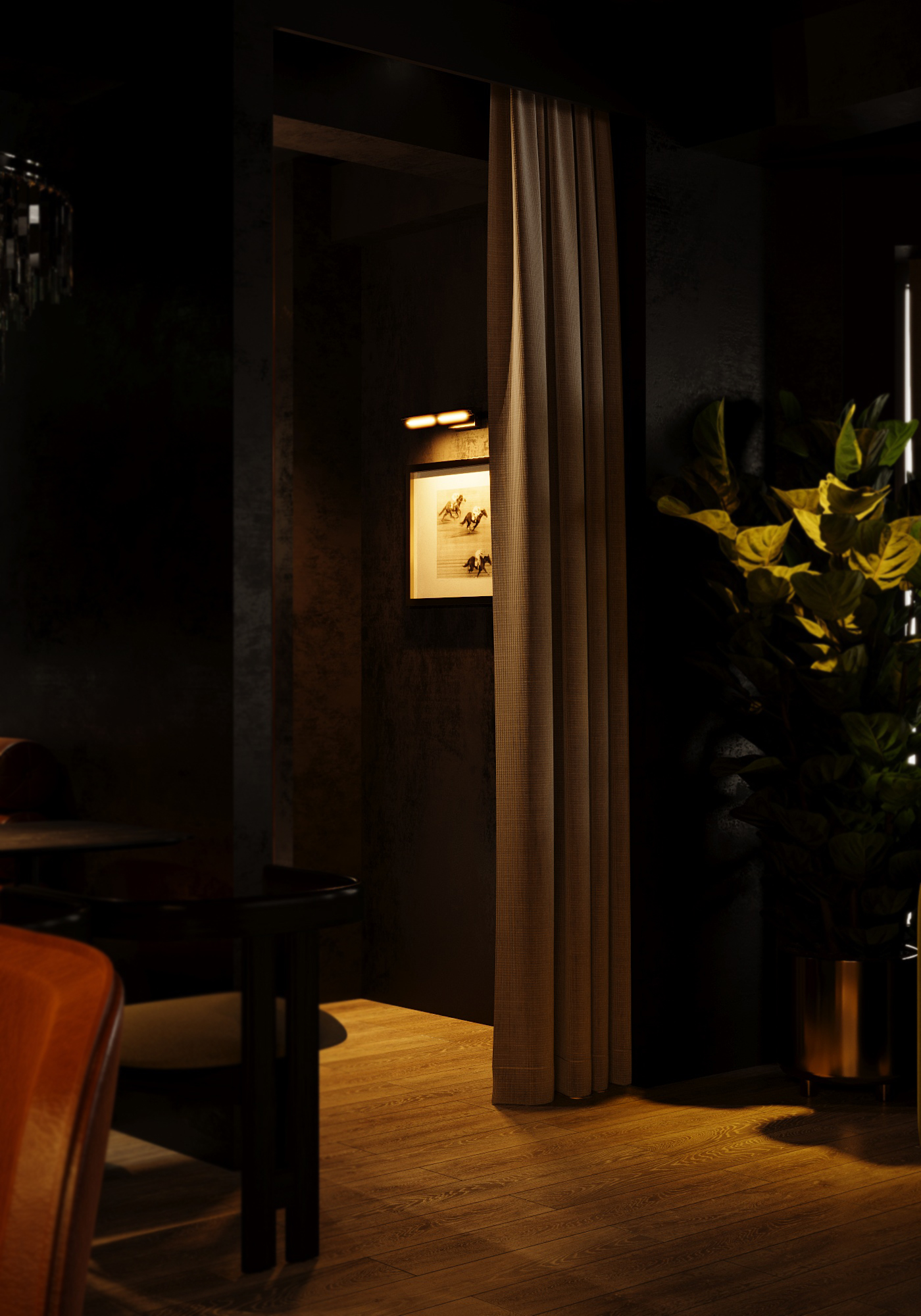 Особое внимание уделено свету: локальные светильники, скрытая подсветка и акцентные люстры формируют мягкую, почти театральную атмосферу без визуального шума. В результате получился сдержанный, премиальный интерьер кальянной, где каждая зона работает на приватность, комфорт и длительное пребывание гостей — проект, точно отражающий философию студии Onetwohome.